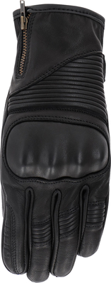 Features Vintage look waxed leather gloves with flexible knuckle protector Accordion stretch panels for optimal fitting Soft jersey lining Wrist closure with velcro Adjustment YKK zipper at cuff for optimal fit Certified knuckle protector Touchscreen functional Homologation EN 13594:2015 KP