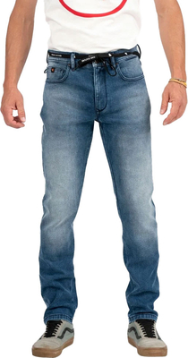 Cool fit, stylish wash & high abrasion resistant material. This is what distinguishes the tapered slim jeans. An eye-catcher on & off the bike. Style Modern tapered fit in five pocket style (leg tapered narrowly) with zipper Material Highly abrasion resistant, single layer 13.5 oz stretch denim Features Highest wearing comfort due to stretch content Protector pockets for knee & hip protectors Knee protector pockets height adjustable incl. knee protectors Stonewashed, used look Certification Riding Culture riding pants are completely made from abrasion resistant material & they are officially certified according to the new standard EN 17092 Certification Level AA Care instructions Washable at 30° C Abrasion Resistant Fibers Riding Culture s single layer protective materials use all the same weaving technology. They combine abrasion resistant fibers in the core & use a cotton elastane cover to create a casual look material with abrasion properties. Polyarylate Polyarylate belongs to the family of high performance engineered plastics, well known for its strength, toughness, chemical resistance & high melting point. Riding Culture always uses this fiber in combination with a lot of stretch to make it even more comfortable to wear. ...