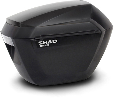 The SH23 side cases stand out for their elegance, lightness & functionality. They have great aerodynamics & keep their resistance & water tightness. The whole capacity (23 liters) is usable, & the opening on top allows the biker to reach the load without getting off the bike. The optional aluminum-look design makes it absolutely ideal for combining road & mountain tours & can be perfectly combined with the SH40 aluminum-look top case. Features Compatible with 3P SYSTEM (patented) The cases can be opened & closed with only one h&, without the need to use the key to access the inside. With one turn of the key, it has a dual locking function, locks the access to the inside of the case & secures it on the motorcycle