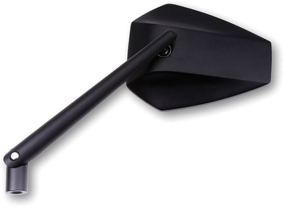 SHIN YO mirror SURFACE, E-approved. Shapely & high quality universal mirror made from aluminum, sandblasted, black satin finish. The adjustable stem & ball head allow individual adjustment. The mirror can be mounted on the right & left.