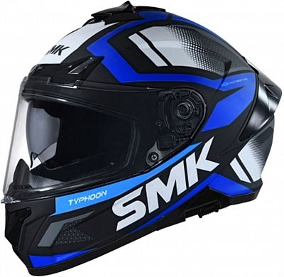 Full-face helmet with a compact & aerodynamic shell design appeals to sports tourers & daily commuters alike! The Typhoon range of helmets from SMK comes with industry-leading safety & comfort features. Enhanced with amazing graphics or plain solid colours, it gives you the option to pick one that matches your lifestyle! A complete ventilation system with vents on the mouth area, on the sides & top keeps you cool & comfortable on long rides. Original Pinlock® ready visor with an easy-to-use inner sun visor lets you enjoy your rides in total safety under all weather conditions. Features Multi-density EPS Chin vents Top vents Channelled exhaust vents Removable, washable, breathable, hypoallergenic lining Antistatic, moisture-regulating fabric Breath deflector Wind protection Quickly removable, scratch-resistant & UV-resistant visor Dual visor system, retractable sun visor Prepared for Pinlock® 70 disc Reinforced chin strap with microlock closure Speaker pockets Certified acco... ...