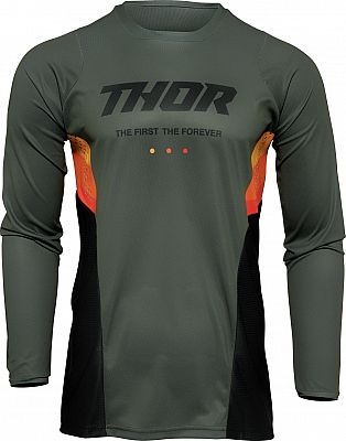 Thor Pulse React jersey. Features Laser cut ventilation for optimized cooling Dimple mesh paneling Durable polyester main fabric 4-way stretch cuff & collar Performance fit Hybrid set-in sleeve Performance construction Moisture wicking materials